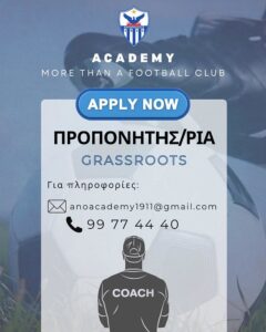ΑΓΓΕΛΙΑ για προπονητές και προπονήτριες Grassroots από την Ακαδημία Ποδοσφαίρου της Ανόρθωσης Αμμοχώστου