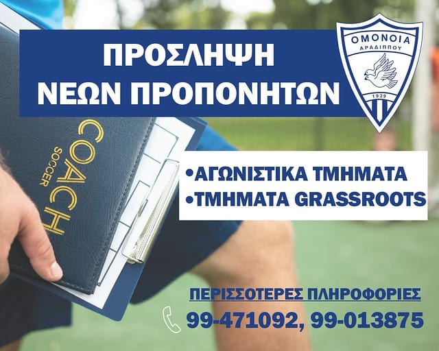 ΑΓΓΕΛΙΑ για προπονητές και προπονήτριες Grassroots από την Ακαδημία Ποδοσφαίρου της Ανόρθωσης Αμμοχώστου